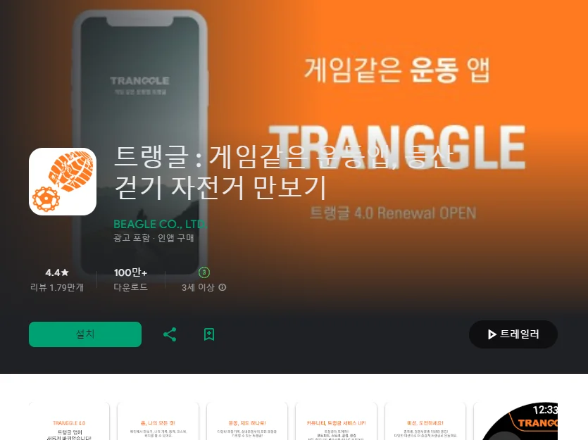아래는 트랭글 : 게임같은 운동앱, 등산 걷기 자전거 만보기 어플에 대한 스크린샷 정보입니다.
