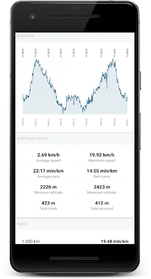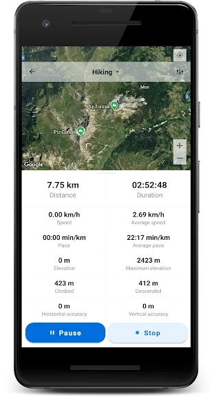 ✔ 거리, 시간, 현재 및 평균 속도, 현재 및 최대 고도, 상승 및 하강과 같은 고급 데이터 표시