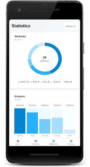 여정을 기록하고 나면 램블러는 여러분의 활동을 분석하여 통계자료를 제공합니다. 이를 통해 자신이 이동한 거리, 소요된 기간, 소비한 칼로리, 평균 속도, 고도 등을 알 수 있습니다.