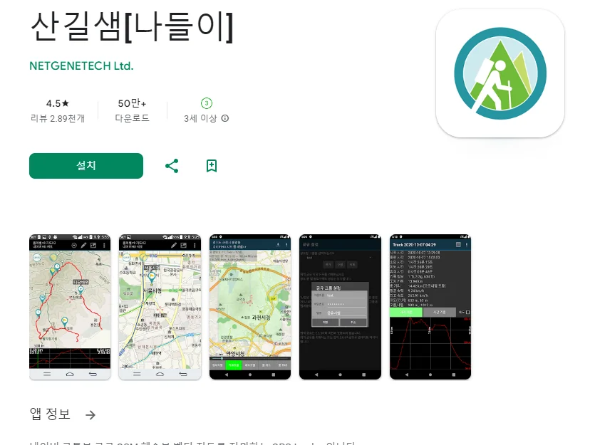 아래는 산길샘[나들이] 어플에 대한 스크린샷 정보입니다.