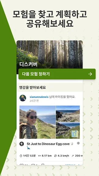 GPS를 이용하여 러닝, 라이딩, 사이클링, 하이킹을 추적해보세요. 사진, 하이라이트, 팁을 추가하고 나만의 운동 기록을 모으면 좋아하는 경험을 평생 간직할 수 있답니다. 개인적인 용도로 저장해도 좋고, komoot 커뮤니티에 공유해서 ‘좋아요’와 댓글을 받고 다른 여행자가 다음 여행 계획을 세우는데 영감을 주는 것도 좋아요. 친구들과 마음이 잘 맞는 모험가를 팔로우하여 그들의 최근 모험을 확인해보세요.