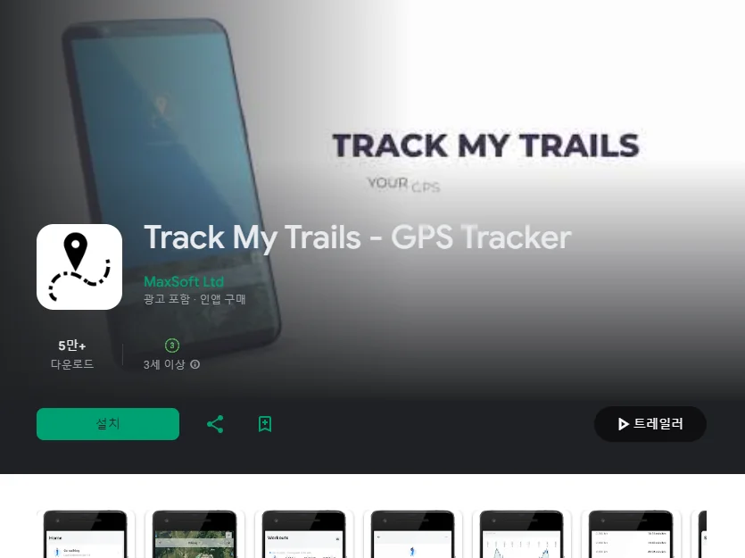 이 어플은 구글플레이스토어에서 "등산 GPS 기록"로 검색했을때 5번째로 나오는 어플입니다. 아래는 Track My Trails - GPS Tracker 어플에 대한 자세한 설명이니 참고하세요.