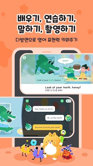 - 우수한 음성 인식 및 AI 기술을 사용하여 따라 읽기, 더빙, 상황별 대화, AR 촬영 등 영어 교육에 적합한 학습 환경을 구현해 냈습니다. 따라서, 마치 놀이를 하듯 즐겁게 영어 학습이 가능합니다.